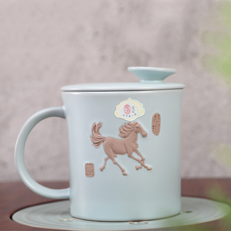 Hengfu Host Ru Kiln a horse when first at ease with cup open sheet Chinese ceramic tea cup personal with cover cup