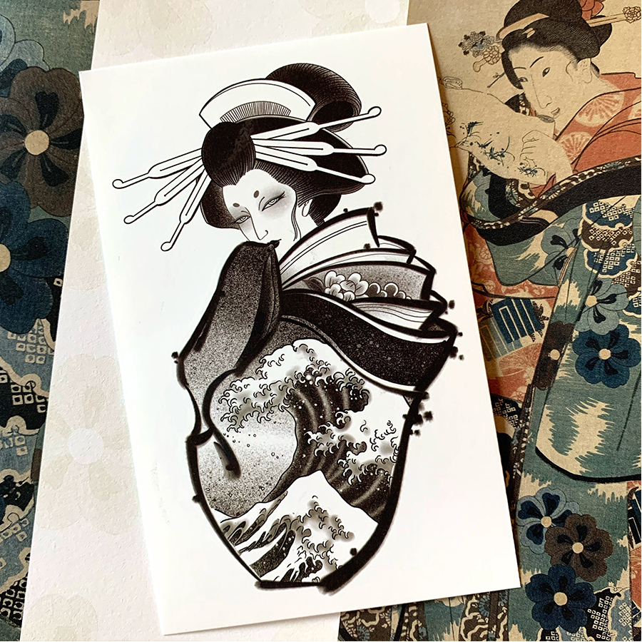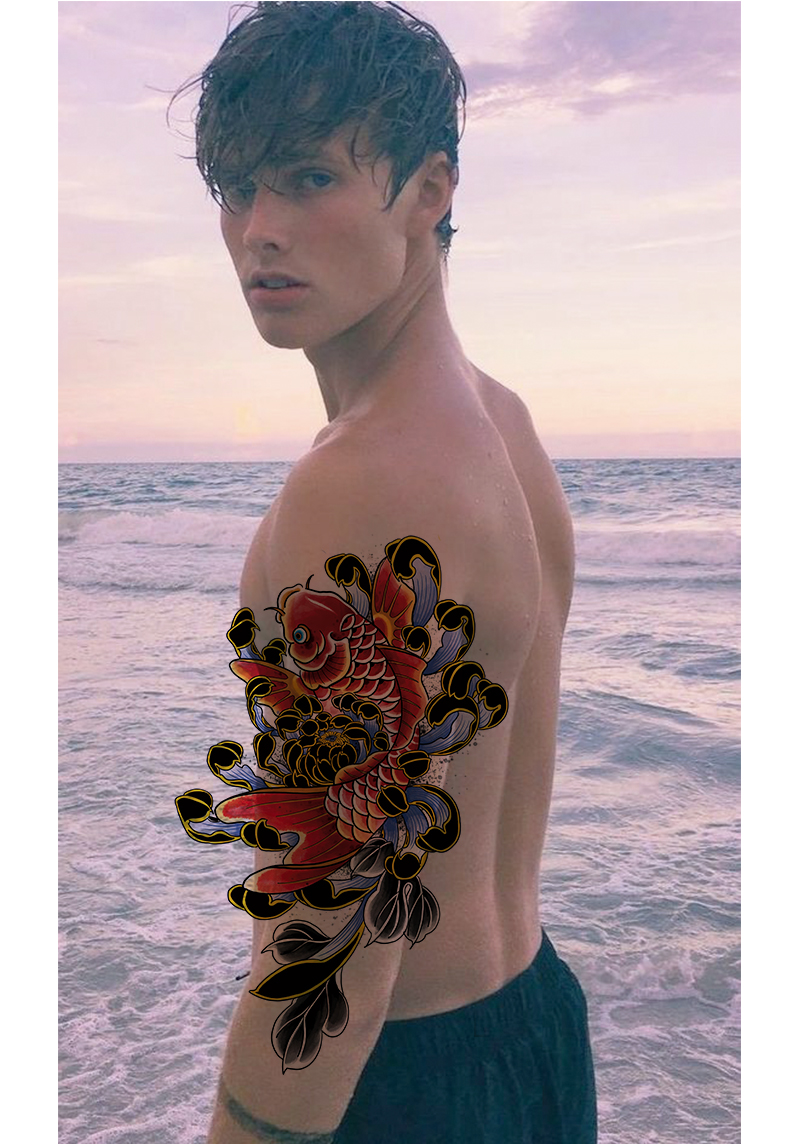 Buy one get one free zingtattoo Koi original custom Ukiyo-e tattoo stickers for men and women flower arms waterproof sweatproof