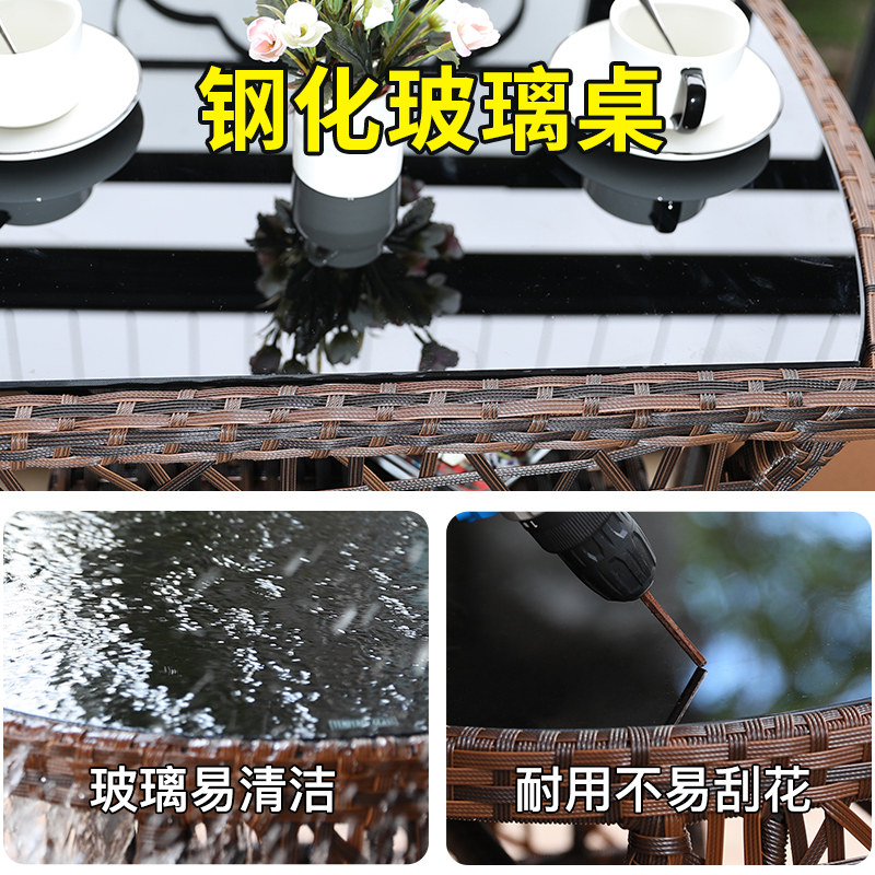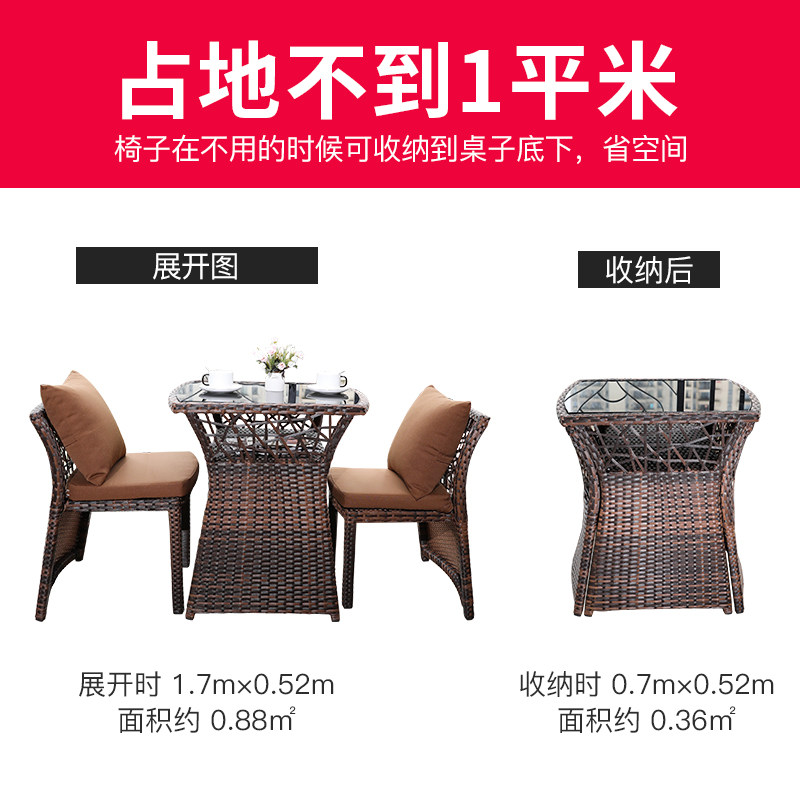 Balcony rattan chair Three-piece outdoor garden woven rattan table and chair combination Leisure open-air balcony small coffee table Creative rattan chair