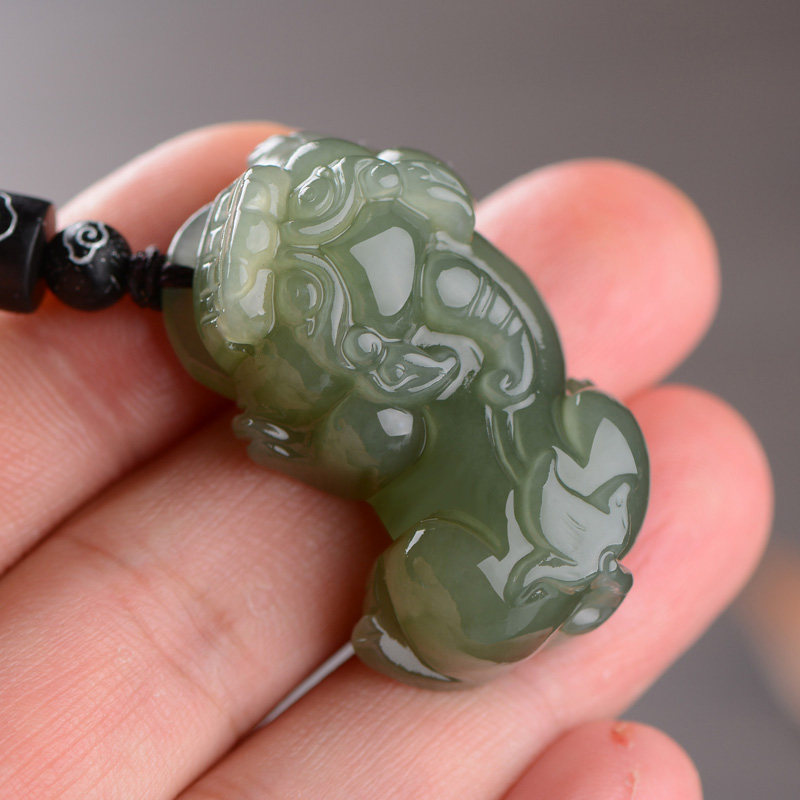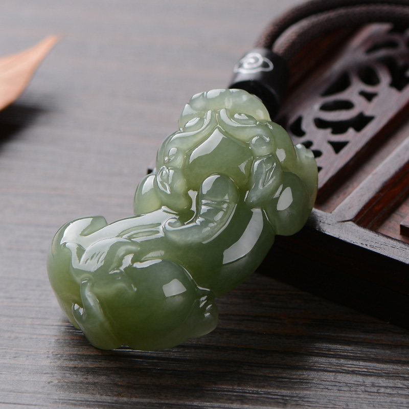 Xinjiang Hetian Jade Qingyu Pixiu pendant Men's and women's jade lucky overlord Pichu pendant Jade necklace