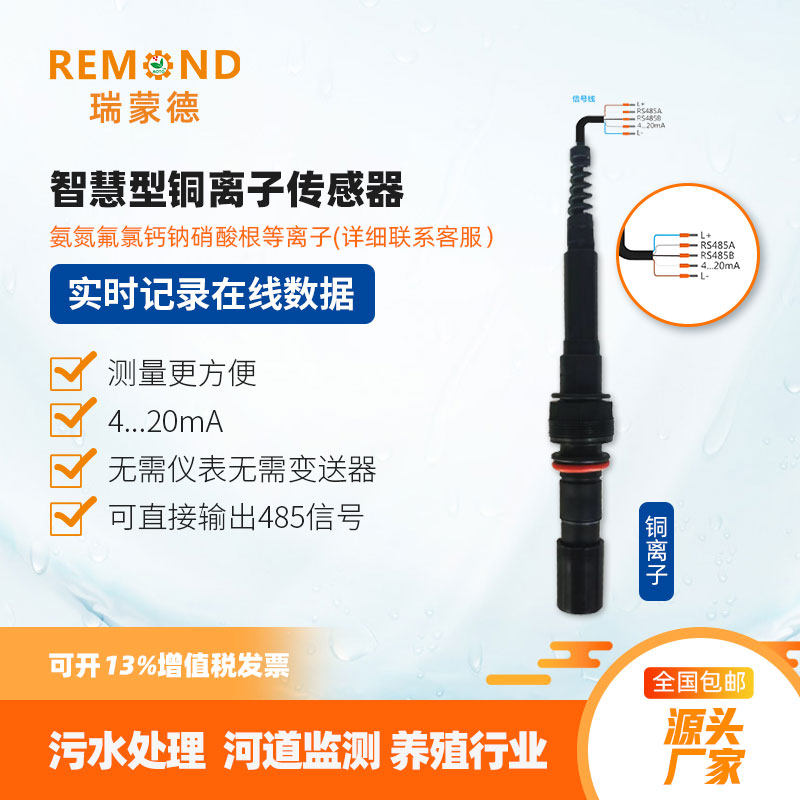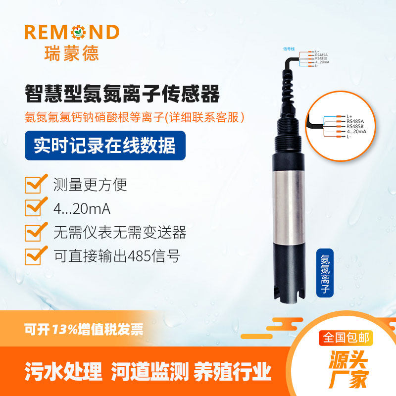 Ammonia nitrogen sensor industrial line calcium chloride fluoride nitrate cyanide cyanide bromide sodium potassium iodine copper electrode 485 ammonium ion