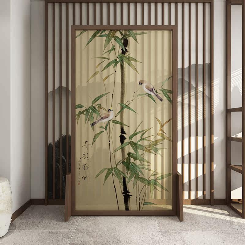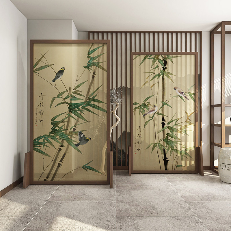 New Chinese Screen Living Room Compartment Bedroom Shelter Home Modern Simple Fabric Entrance Mobile Solid Wood Seat Screen