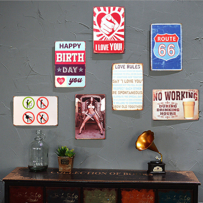 Nostalgic slogan tin painting wall decoration wall pendant living room background wall bedroom painting dining room wall painting