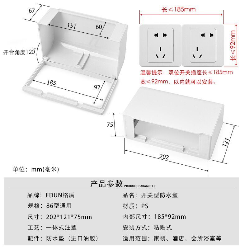 Two-bit plus height 86 type adhesive type splash-proof box bathroom water heater switch socket white bed bag - Taobao