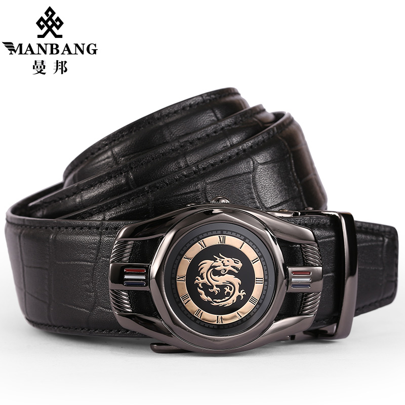Men Leather Strap Genuine Leather Head Layer Pure Cow Leather Business Automatic Buckle Belt Tide 2021 New Young Fancy Pants Strap