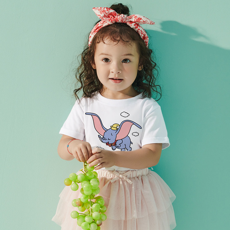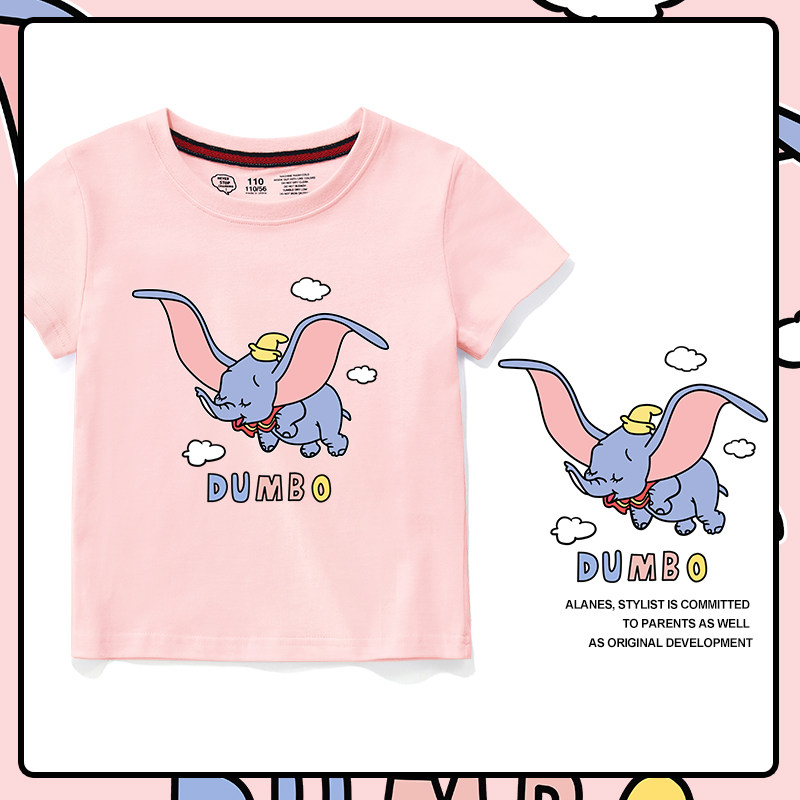 Dumbo cartoon short-sleeved male and female children's baby ocean school T-shirt 2021 new round neck pure cotton children's summer half sleeve