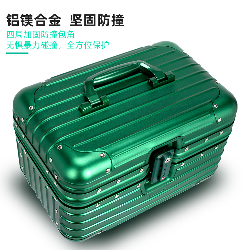 Metal cryptobox all aluminum magnesium alloy suitcase beauty box 12 inch emerald green container bag
