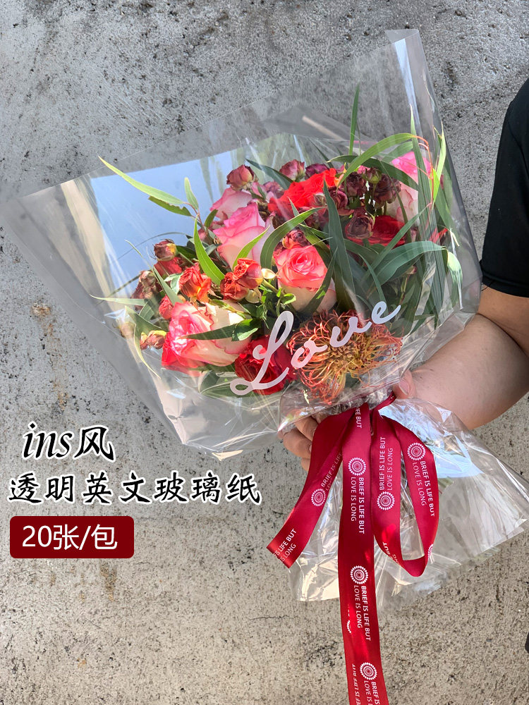 ins wind transparent cellophane carnation flower wrapping paper material Simple woven opp waterproof bag flower plastic cloth