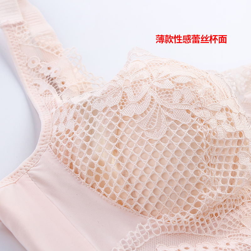 Lace Lingerie Woman Thin steel ring No steel ring ultra-thin bra hood large breasted with a small display and chest coat water crystal cup summer