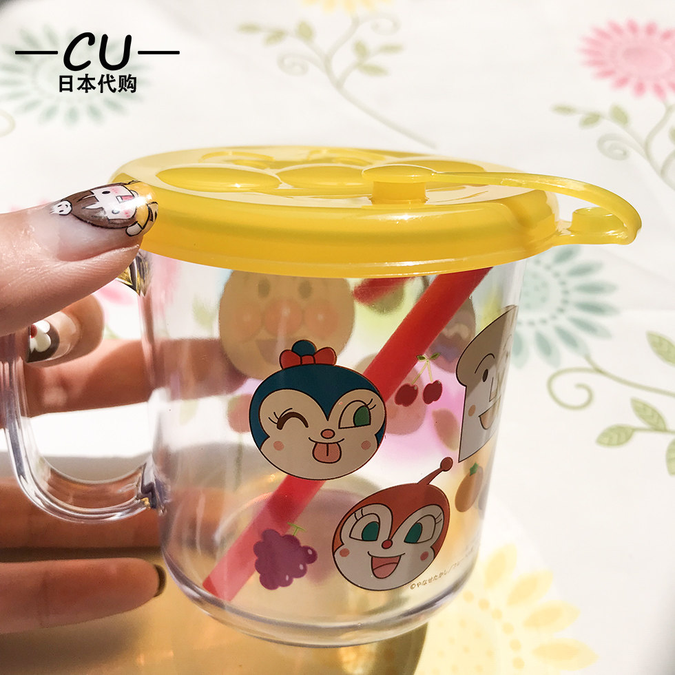Spot Japanese bread Superman baby learn drinking straw cup baby drink water children with lid water glass heat resistant and resistant