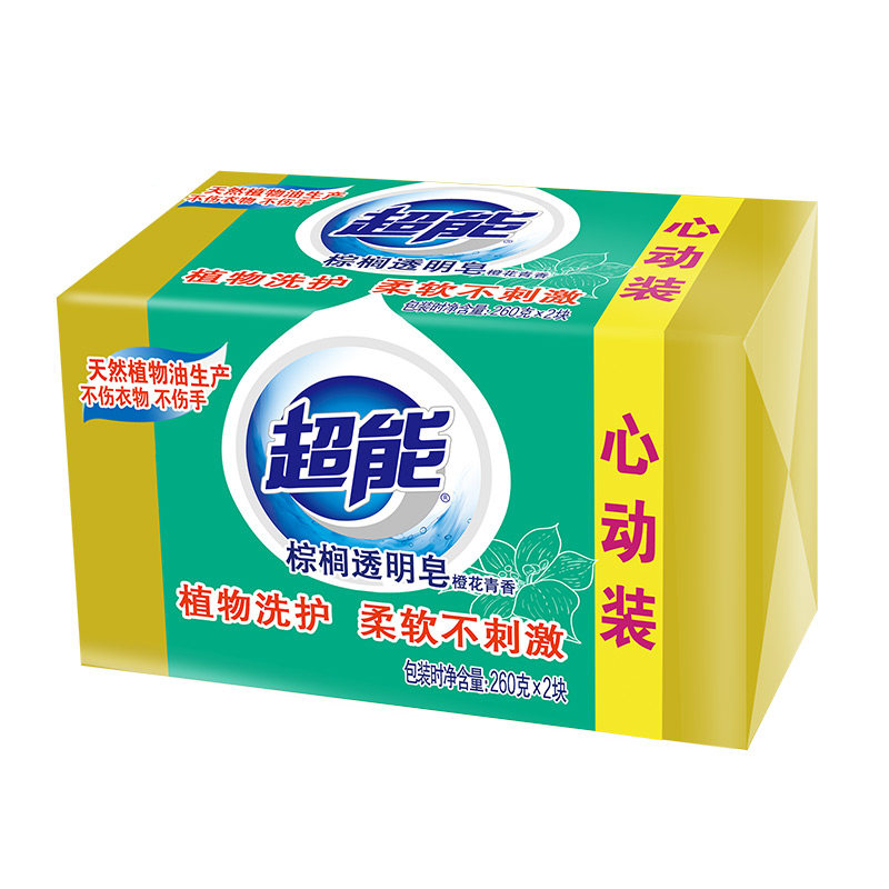 Ultra-energy laundry soap orange blossom green incense (260 gr * 2 gr) * 18 groups of total 36 pieces of yellow transparent soap palm soap