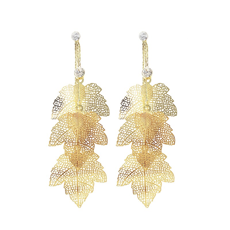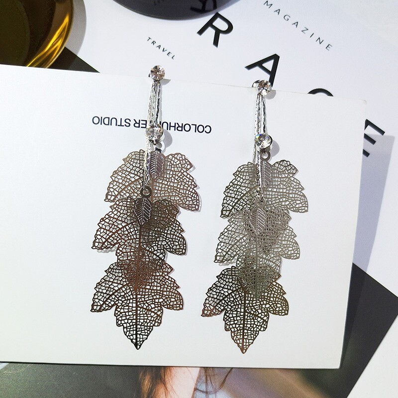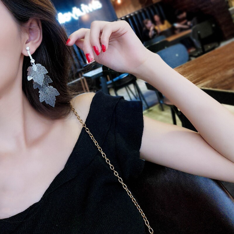 Y9 Water Drill Leaves Metal Earrings Woman and America Exaggerated Personality Tide Man's Ear Pendant Korean Temperament Long Version Ear