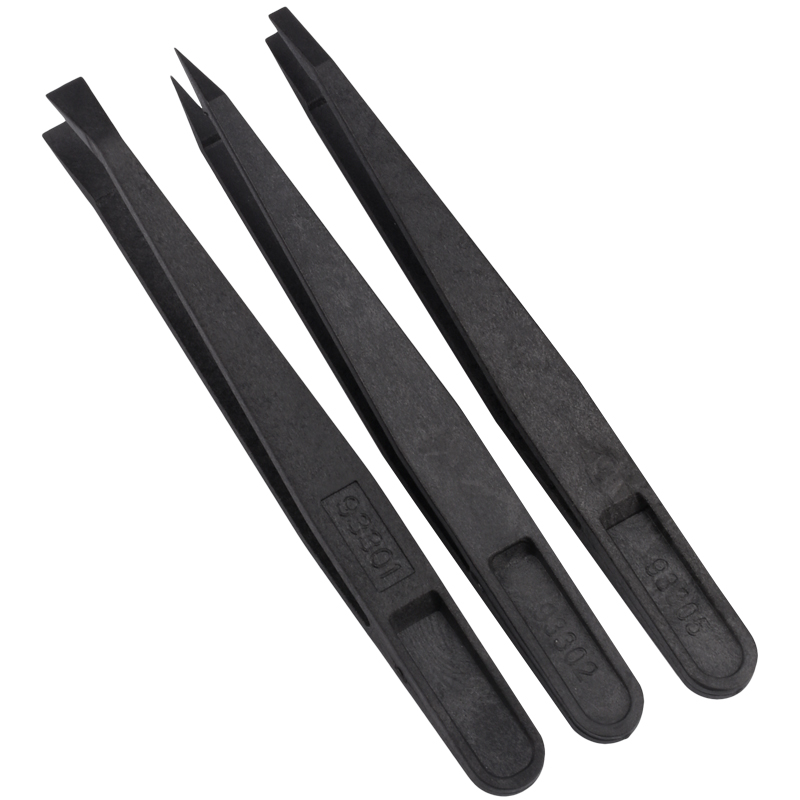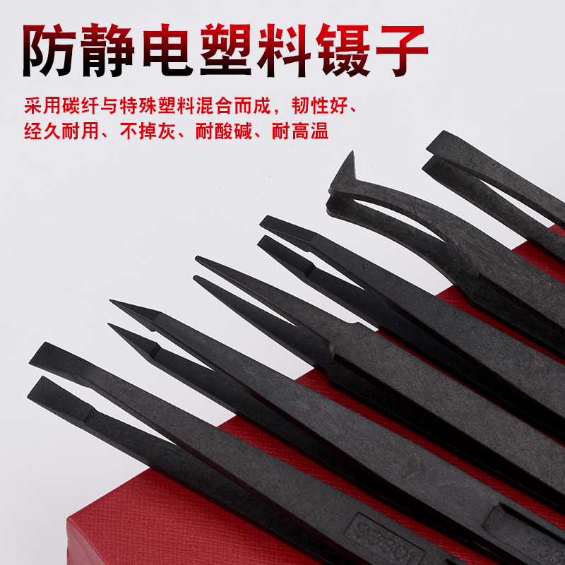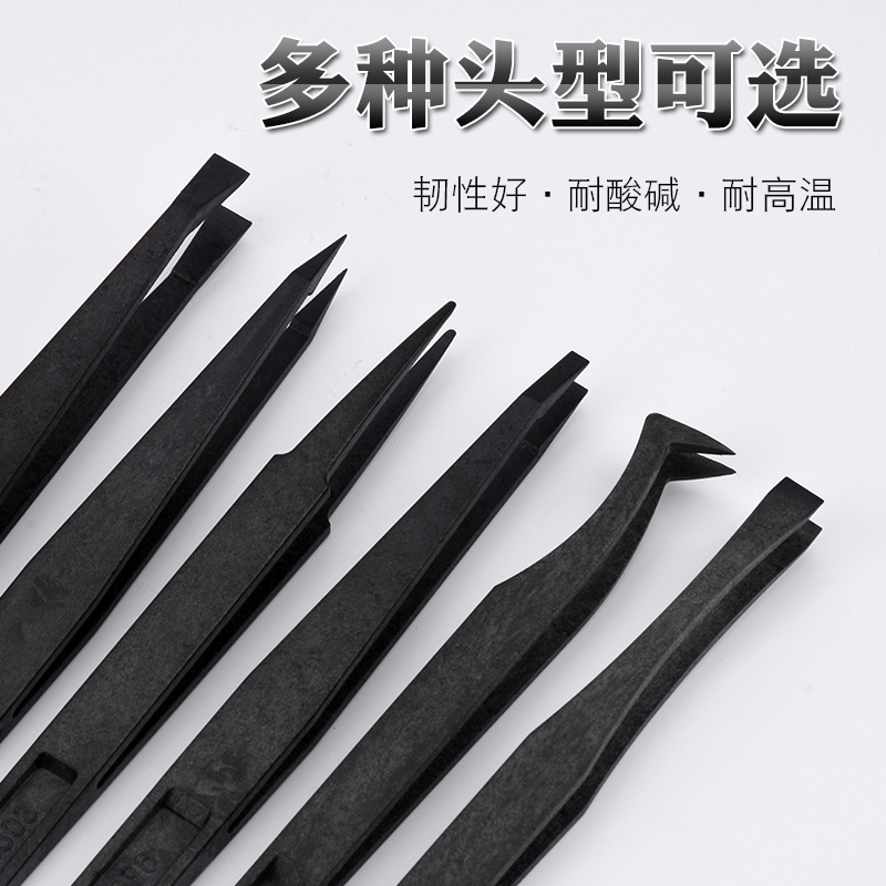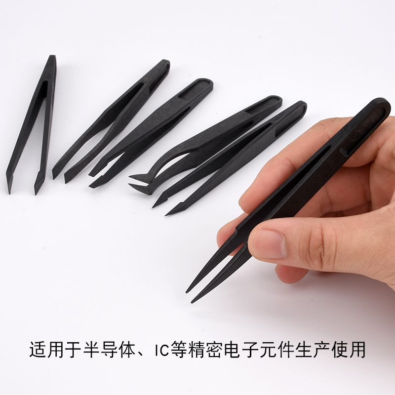 Antistatic Tweezer Black Flat Head Elbow Tip Flat Mouth Round Head Plastic Tweezers Electronic Tool Carbon Fiber Tweezers