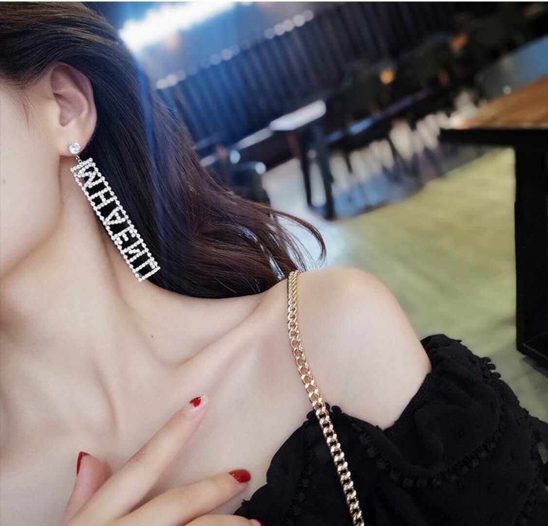 Y92018 new Korean exaggerated European and American long version letter earrings female personality temperament wild net red simple earrings