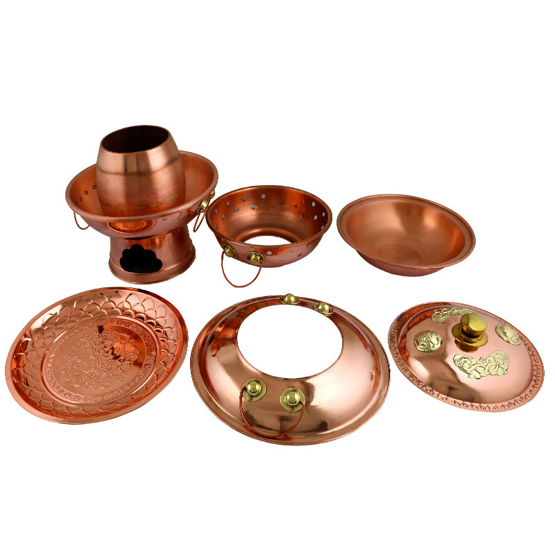 Single's pure copper double layer charcoal copper hot pot Pepper Frog Pan Charcoal Fire Frog Pan Two Layers Pagoda Mandarin Bronze Hotpot