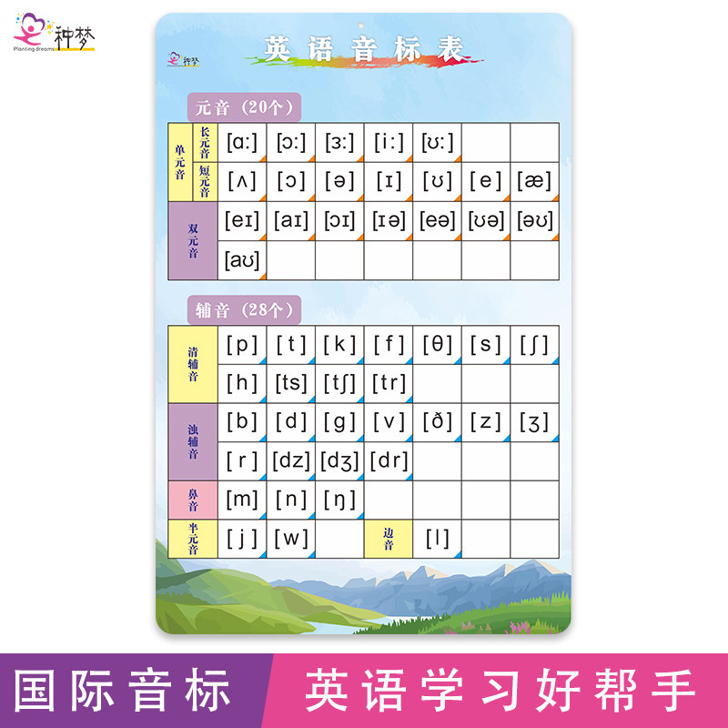 English phonetic chart wall chart silent wall stickers 48 letters international primary school students teaching materials kindergarten early education word grammar