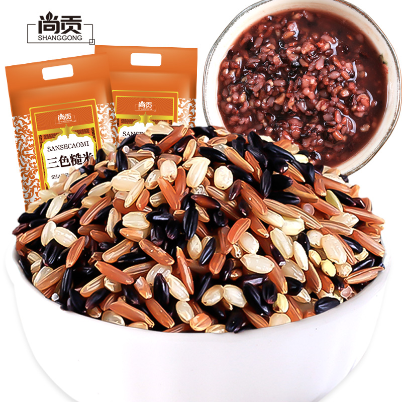 Three-color brown rice new rice 5 pounds of whole grains red rice black rice Brown rice blanched grains Fitness germ 10 pounds fat reduction rice