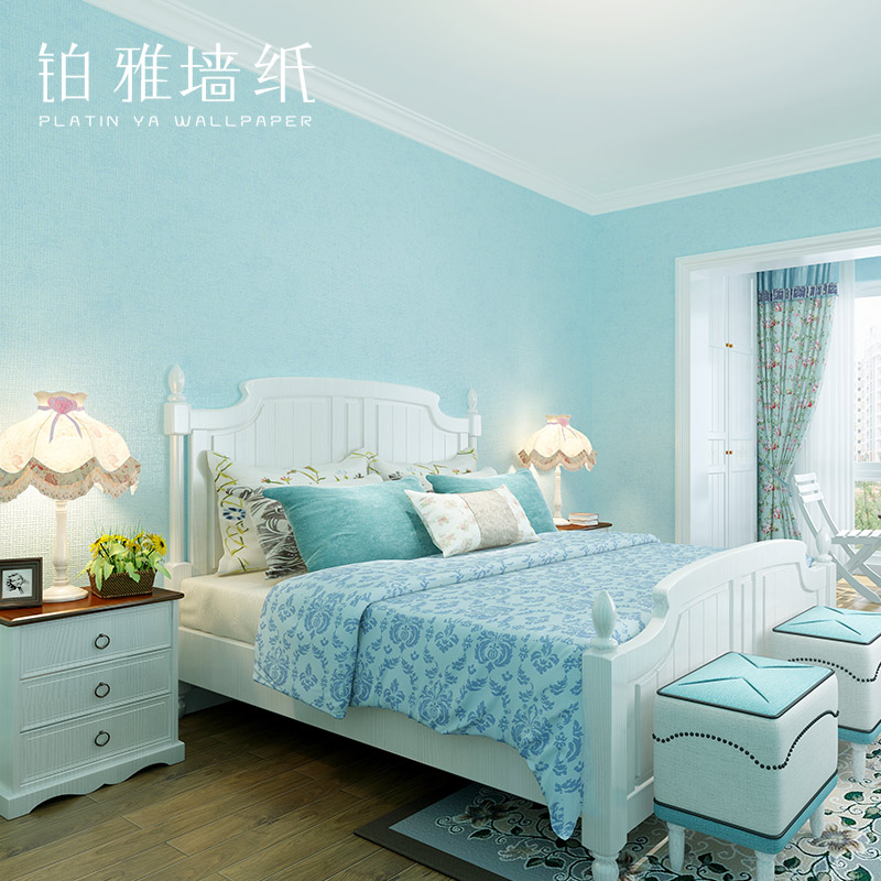 Wallpaper of style of Nordic wind INS is modern contracted non-woven solid color bedroom Mediterranean family home light blue wallpaper