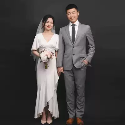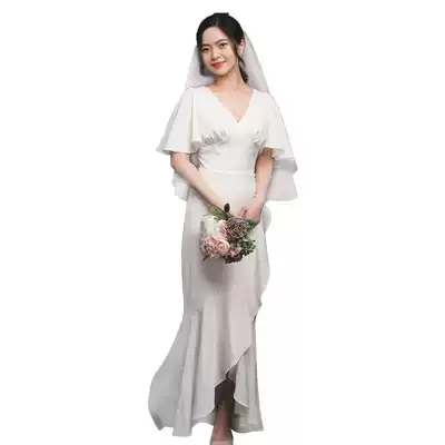 2021 new bridal tour light gauze autumn and winter slim female sexy satin simple Moren line go out gauze light wedding dress