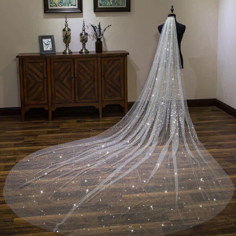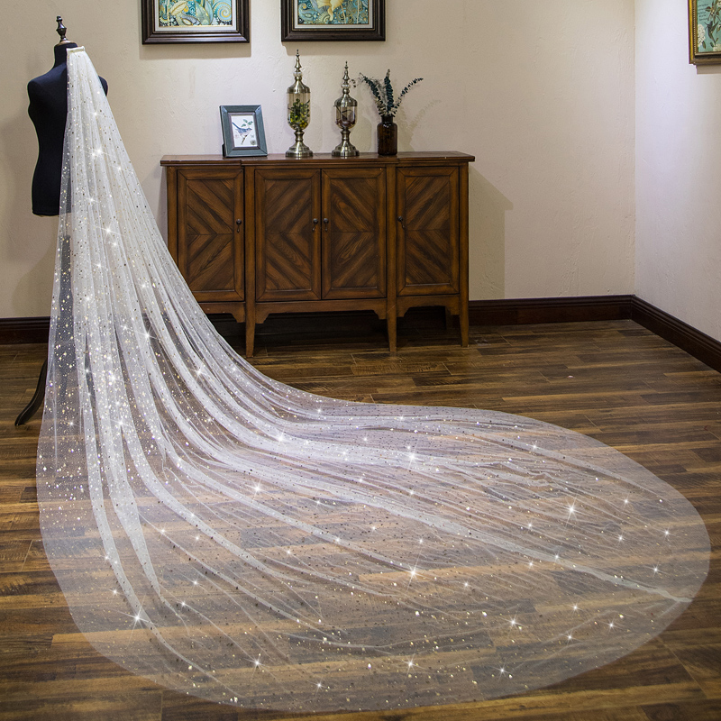 Champagne starred head yarn female brides super-long trailing wedding dresses wedding dresses headwear head decorated with long version of supersenssen white