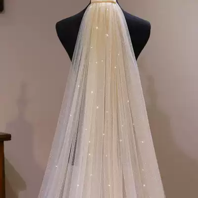 Champagne star yarn female bride super long tailed wedding dress wedding veil long version Super fairy White