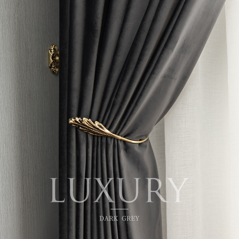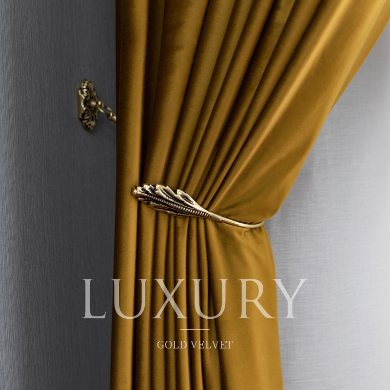 Light extravagant retro American-style living-room bedroom custom pure color shading velvet fabric curtains heaven goose down floor window-Taobao