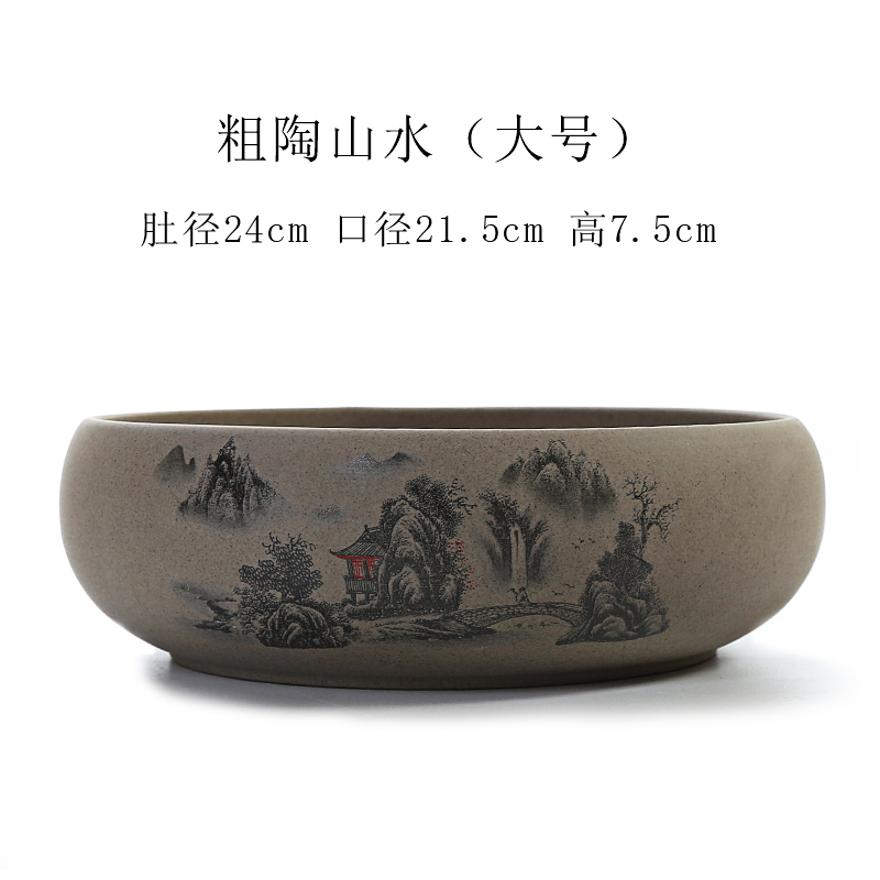 Coarse Pottery Lotus (large number) coarse pottery Jiangnan (large number) coarse pottery landscape (large number) coarse pottery Delight Upper Brow (large number) 9-inch white basin belly diameter 25cm Festival high up belly diameter 25cm