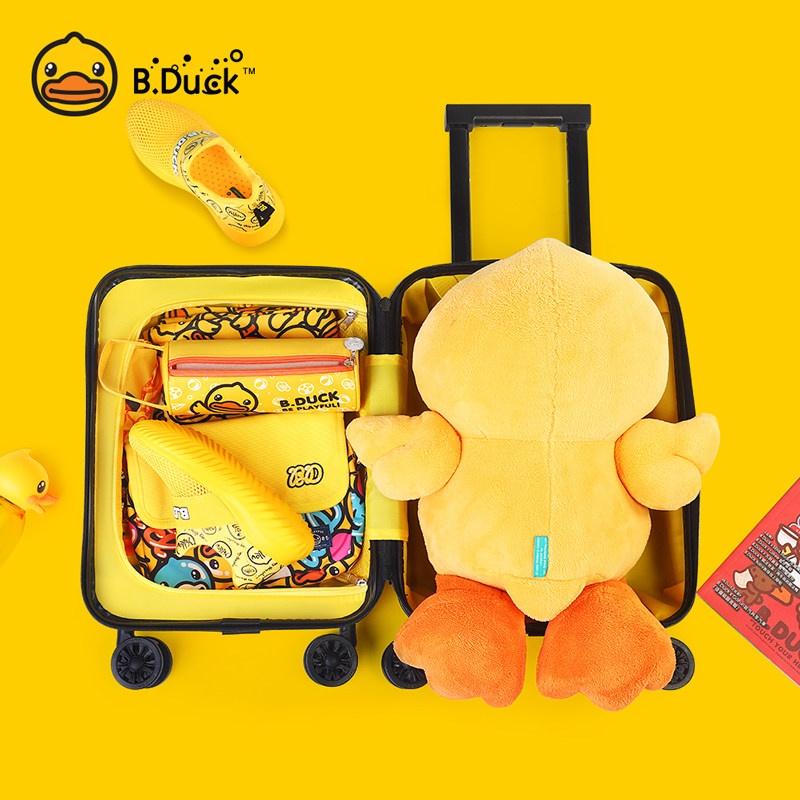 bduck small yellow duck lalever case child suitcase girl 16 inch cute cartoon mini travel leather case man