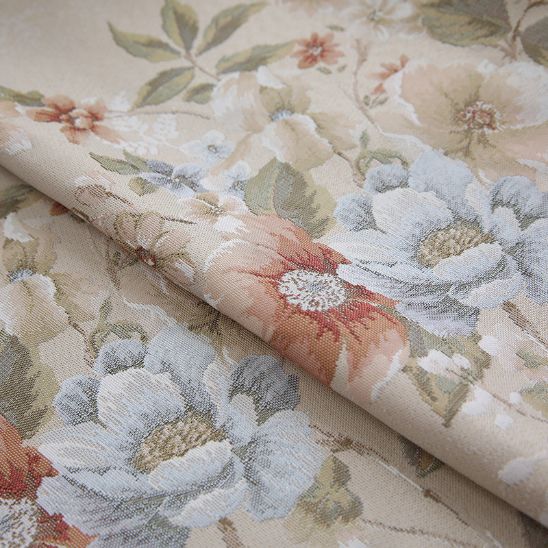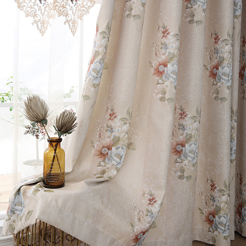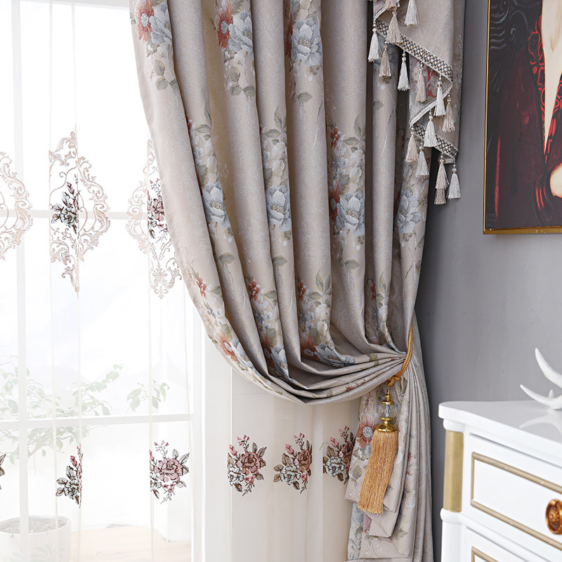 European-style living room blackout curtains Beige jacquard embroidered fabric bedroom bay window custom new balcony floor-to-ceiling gauze curtain