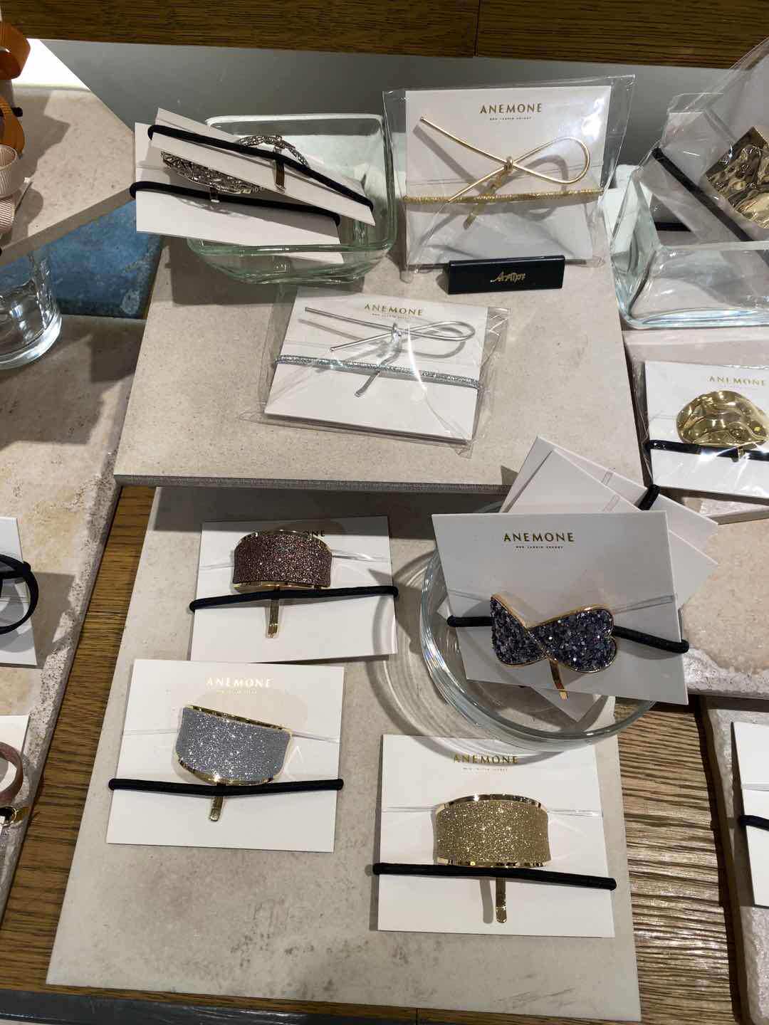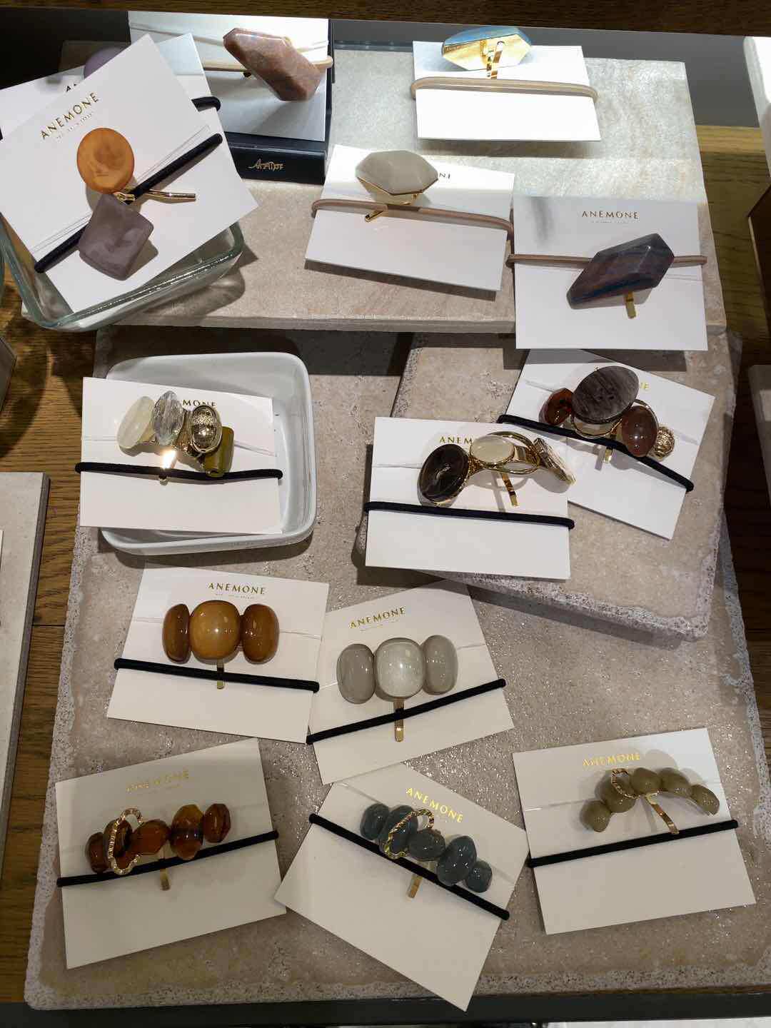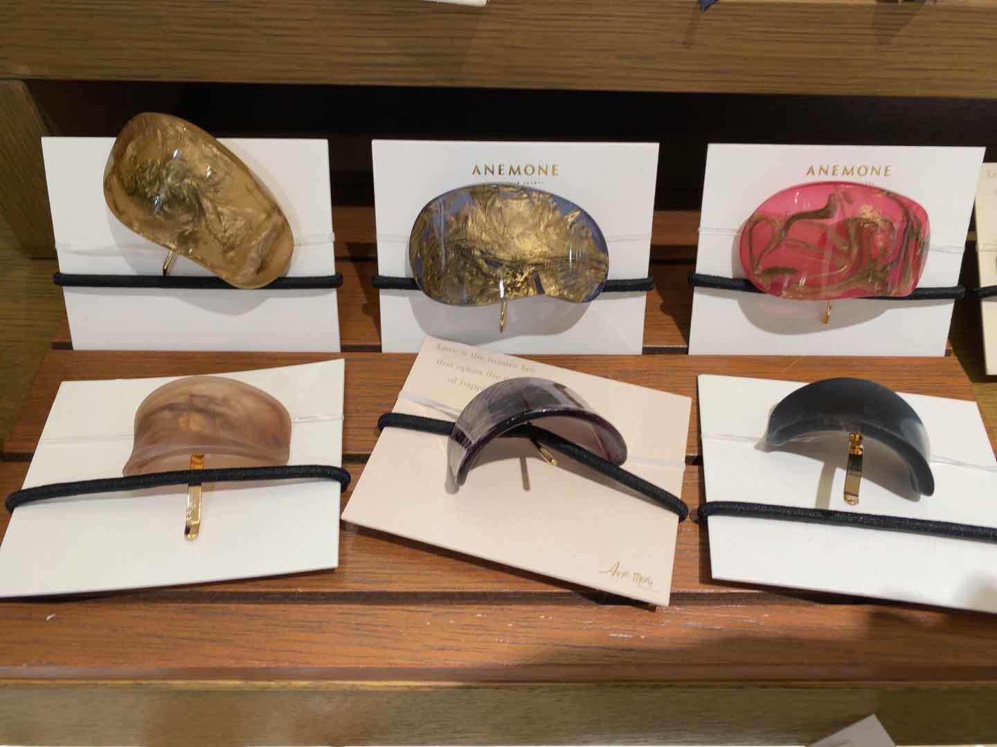 Light blue circular hollow splice metal hair ring metal hair ring brown fork shell shaped beige shell brown hollow metal letter A yellow BAO WEN French brown semicircle A pink