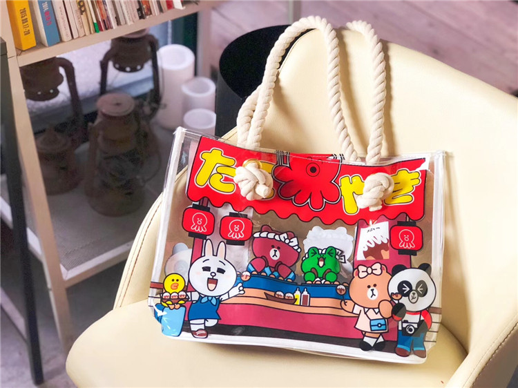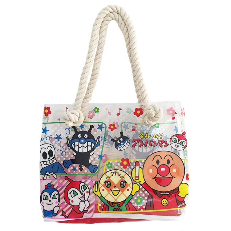 Crayon small new bread superman left guard small white PVC transparent waterproof beach bag thick hand rope portable shopping bag