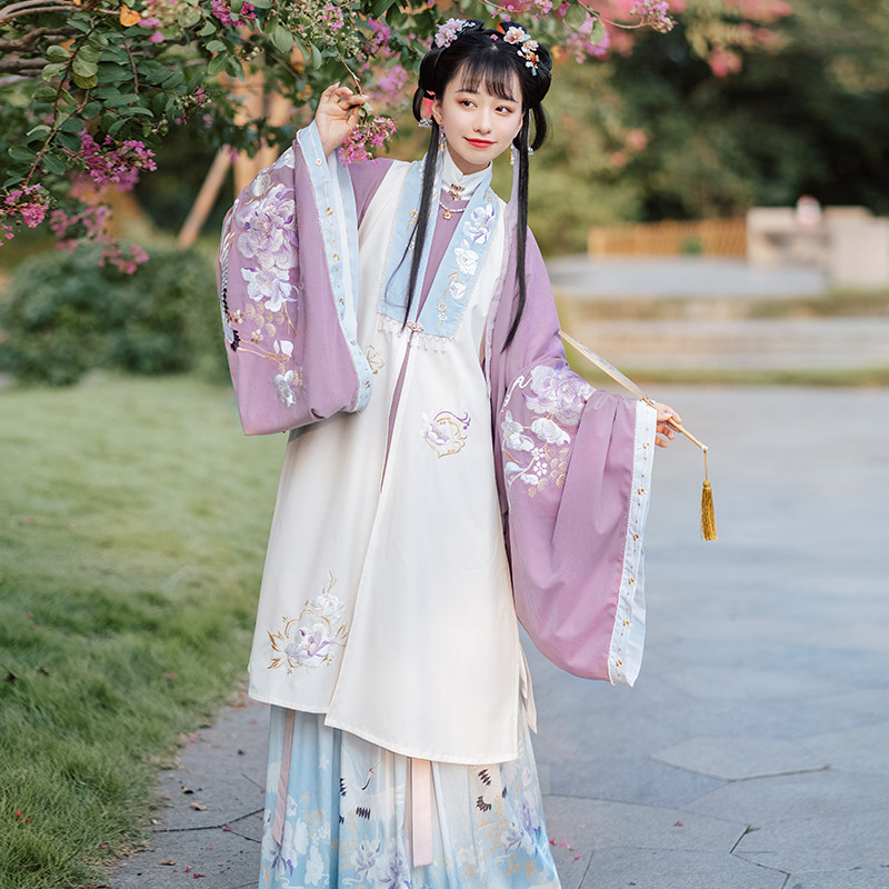 Pool Xia February Membership Cloud Water Yao Ming-made Neckline Skirt long padded jacket Pleated Skirt Long and Original Improved Hanfu Woman