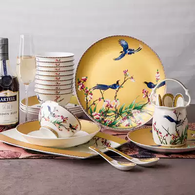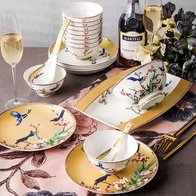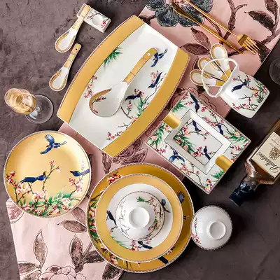 High-end bone China tableware European-style dishes set Household Jingdezhen ceramics Phnom Penh Chinese dishes luxury combination