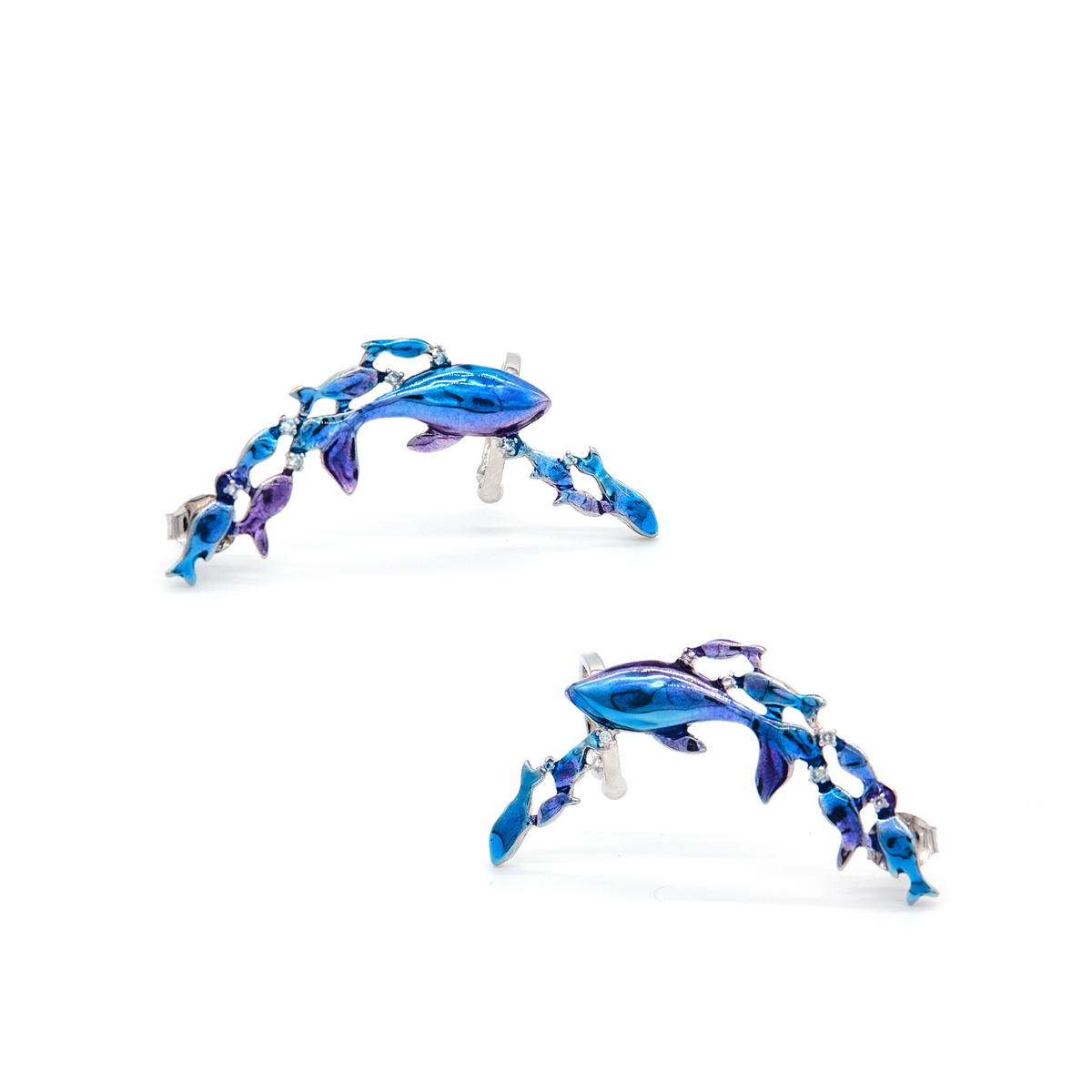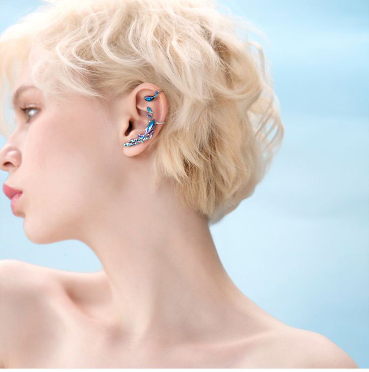 HeyJewel Huahui Jiabao dream sea enamel dolphin ear acupuncture ear bone clip ear bone ring silver