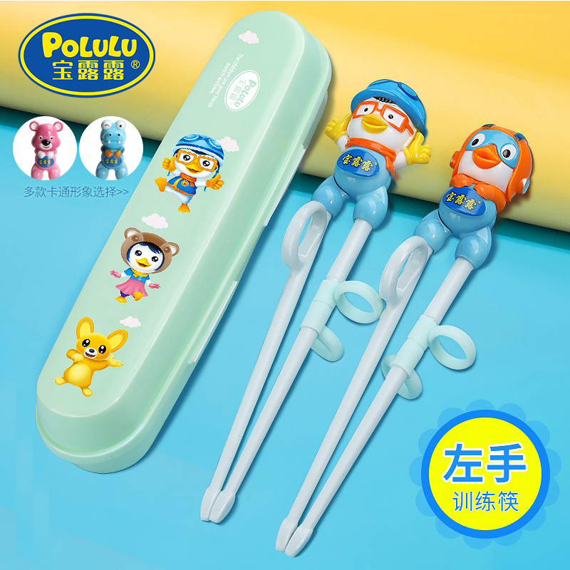 Raised hand male chopsticks (left) Green box Raised hand female chopsticks (left) Pink box Flying baby chopsticks (left) Yellow box Bear male chopsticks (left) Green box Dinosaur chopsticks (left) Green box