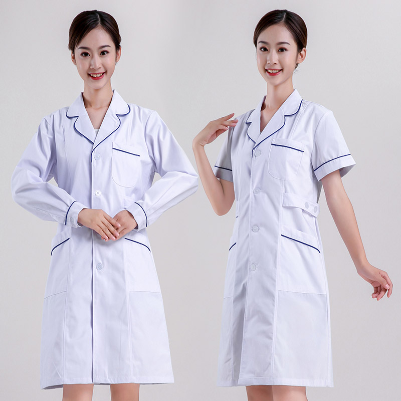 South Dingell Nursing wear white coat with short sleeves Women Breathable Working Clothes Summer Long Sleeve Beauty Salon Pharmacy Textured Embroidered