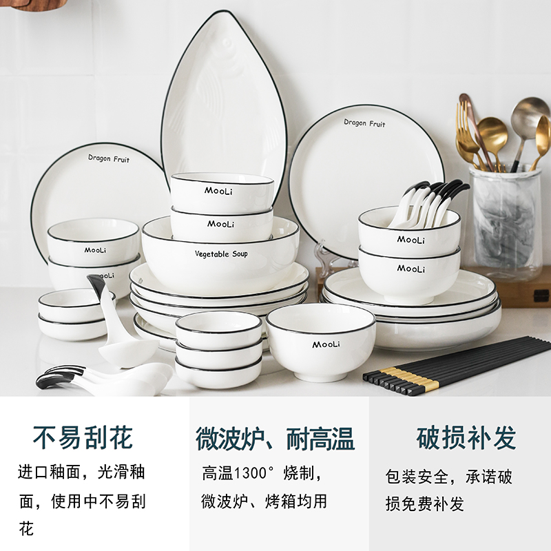 Nordic plate plate Household Japanese ceramic plate Creative tableware Steak plate Western plate Set combination soup plate