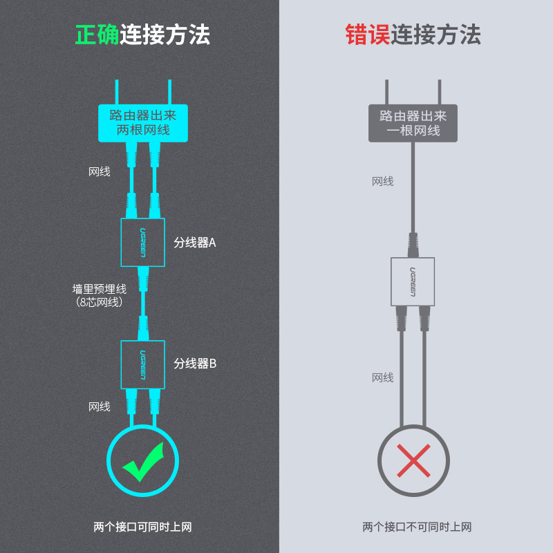 Green network line splitter one point two flow connector head change while surfing the Internet iptv broadband network three-way port