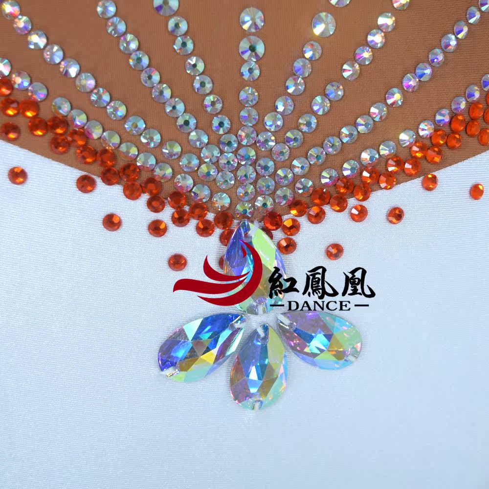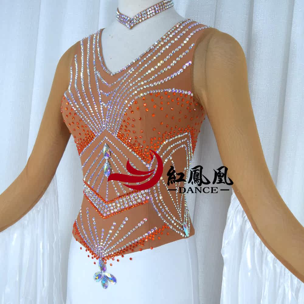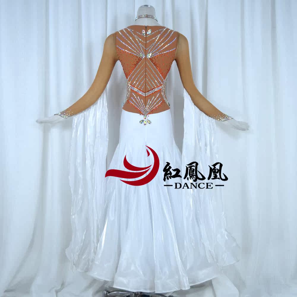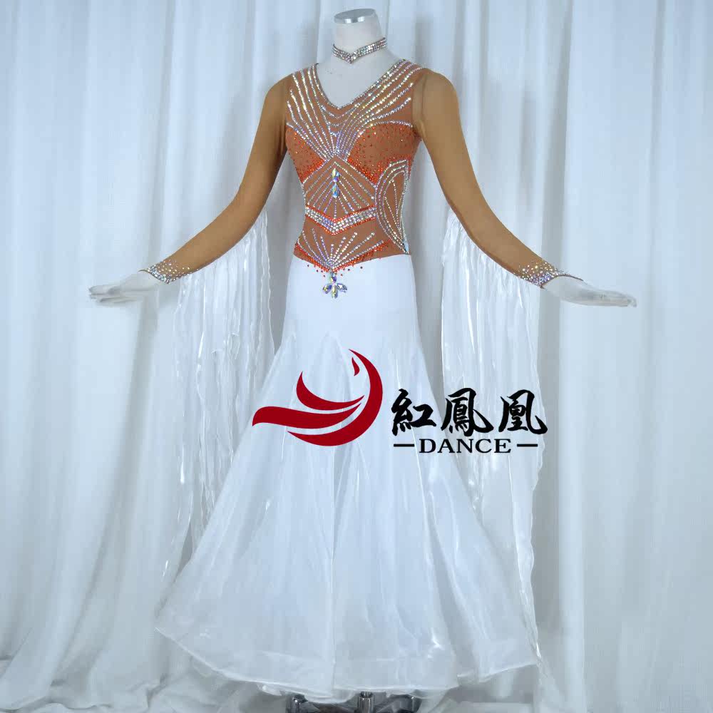 Red Phoenix New Collision Color Morden Dance Professional Race Dress Grand Skirt National waltz Waltz Out BR891