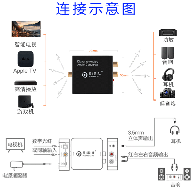 Coaxial second-generation converter combination Pi Le Shi metal head Fiber optic line second-generation converter combination Pi Le Shi coaxial second-generation converter 2 to 2 Lotus line Coaxial second-generation converter