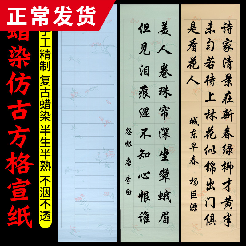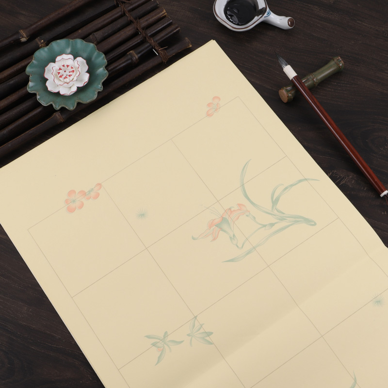 Batik antique square rice paper brush calligraphy four-foot off half-cooked 20 grids 28 grids 56 grids small script retro entries paper national exhibition creation paper with signature grid paper batik paper