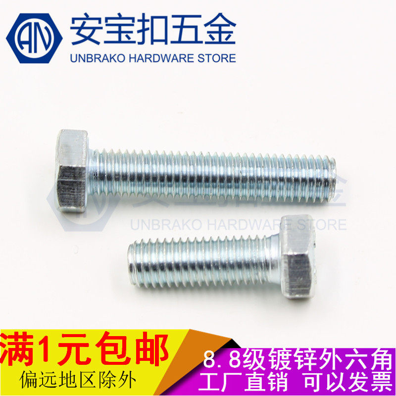 Galvanized 8 grade 8 high-strength outer hexagon screw full tooth hexagonal bolt outer hexagonal screw bolt screw M4M5