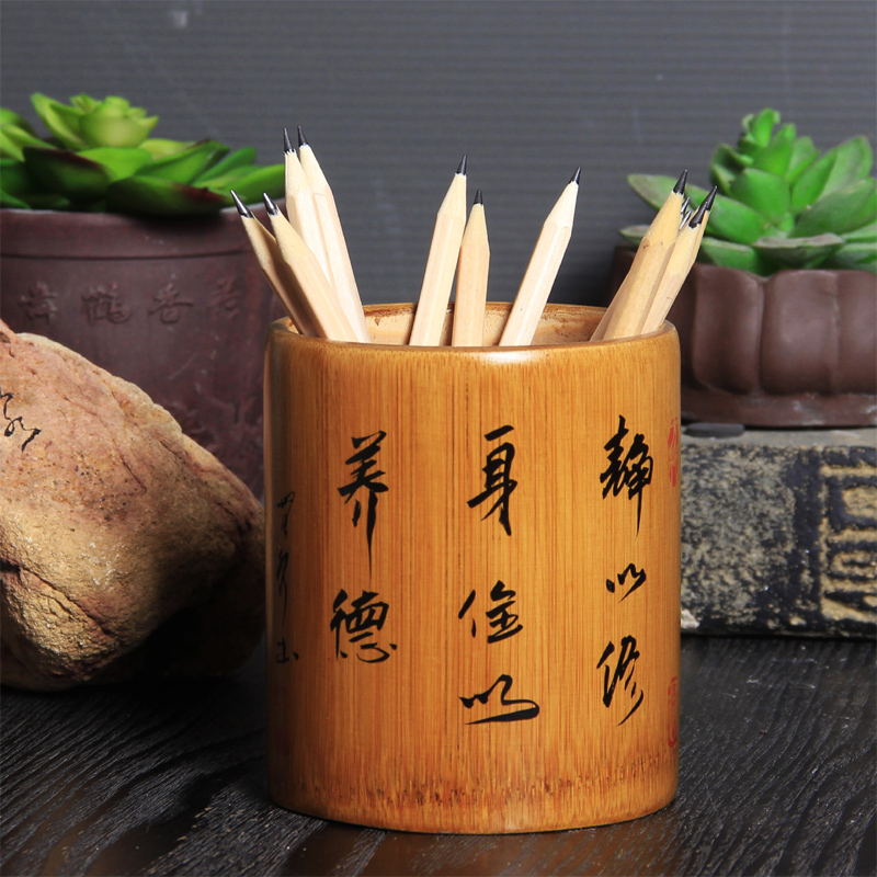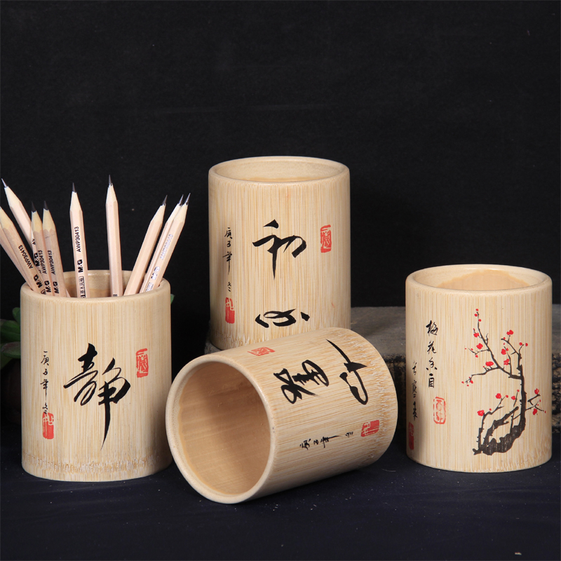 Personality Creative Bamboo Pen Holder Imitation Ancient Retro China Wind Brush Drum Swing Piece Graduation Student Office Custom Gift-Taobao