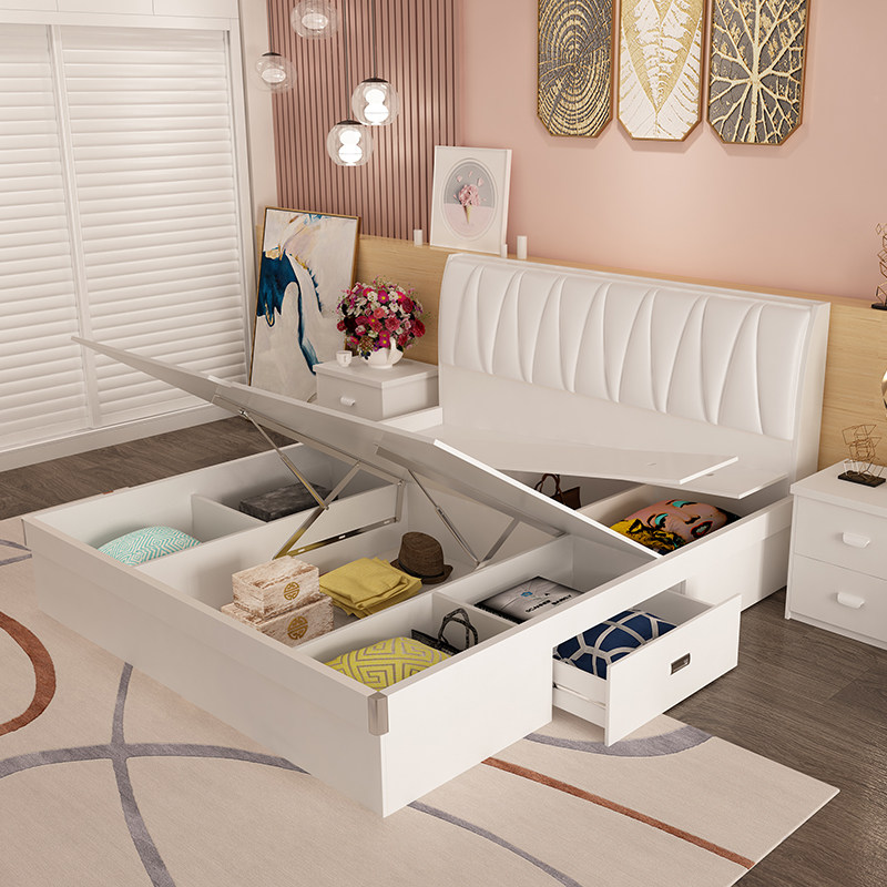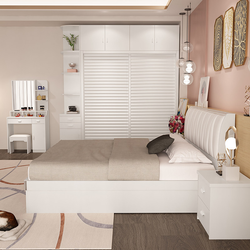 Full set of bedroom complete set of simple master bedroom bed 1 8 board bed 2 0 wardrobe dressing table furniture set combination whole house