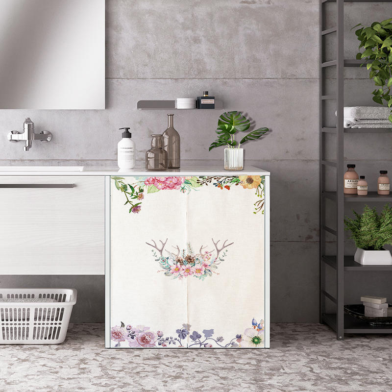 Free hole blocking Shoe cabinet door curtain Velcro self-adhesive open wardrobe whole cabinet Washing machine dust cloth curtain