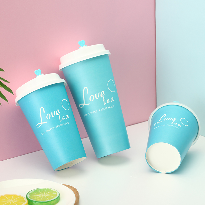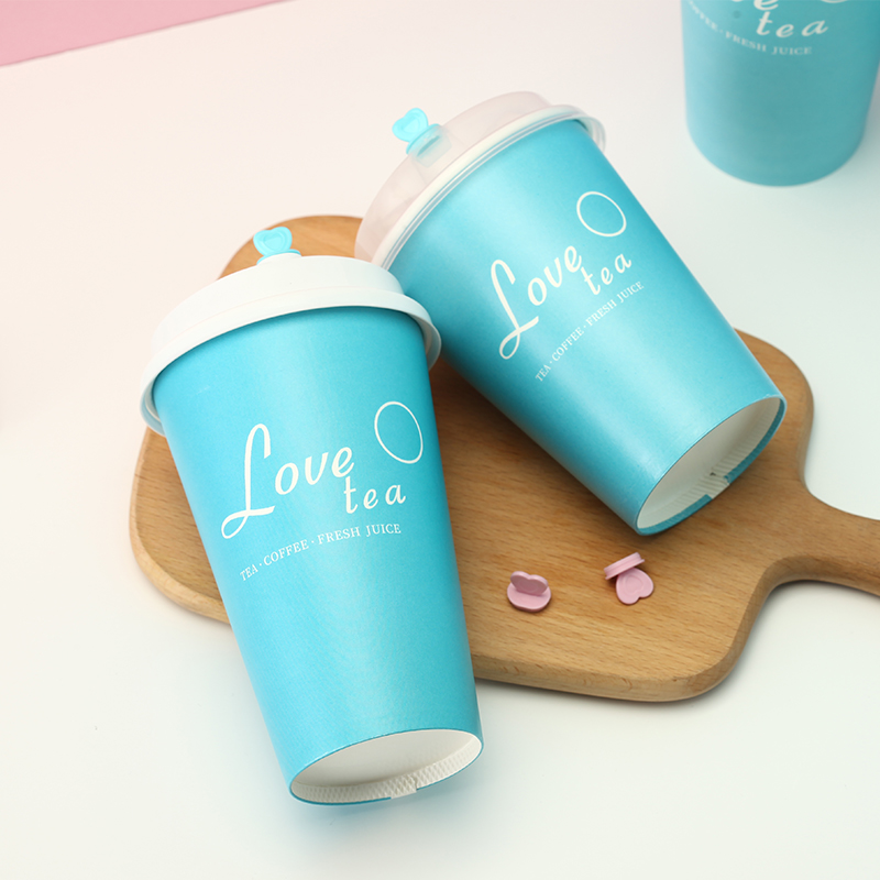 Disposable milk tea cup net red blue cute paper cup can be sealed with lid hot drink coffee cup custom printed logo