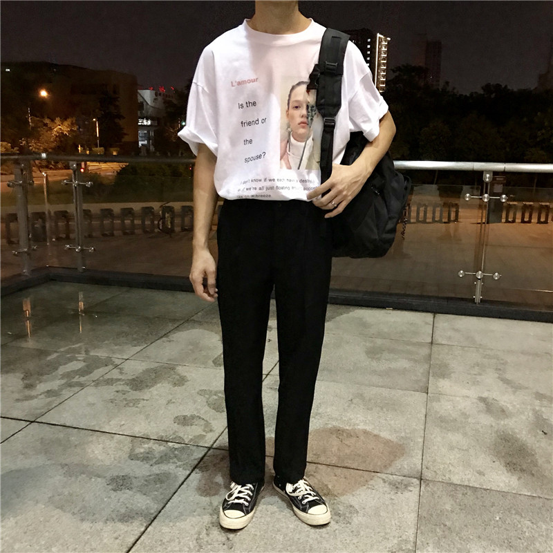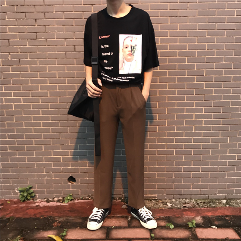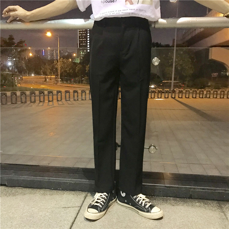 2020 Hong Kong style spring season wide-leg mopping pants men's all-match loose Korean style straight trousers very trousers trousers