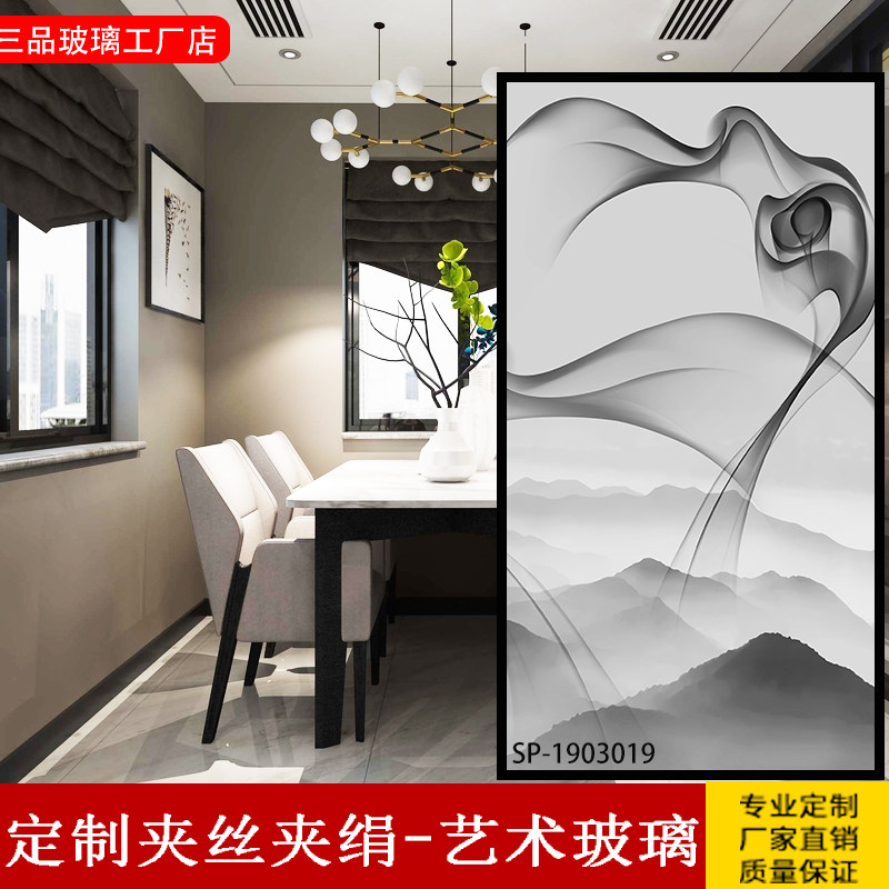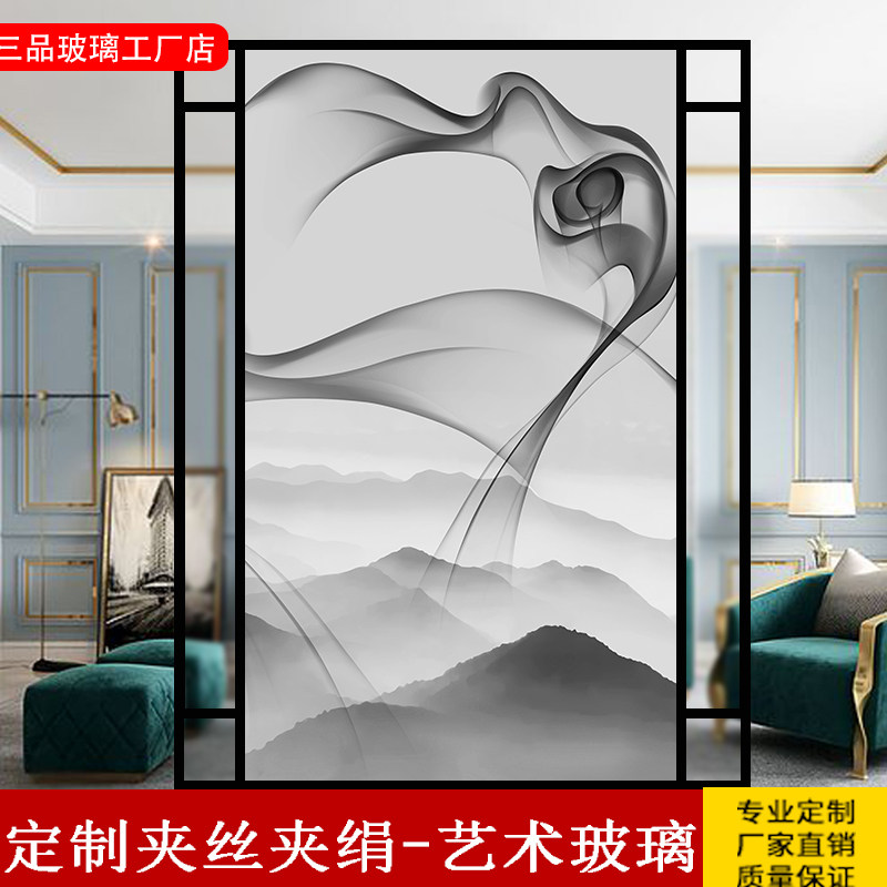 Custom screen partition porch corridor living room background wall laminated tempered artistic conception abstract style artistic glass