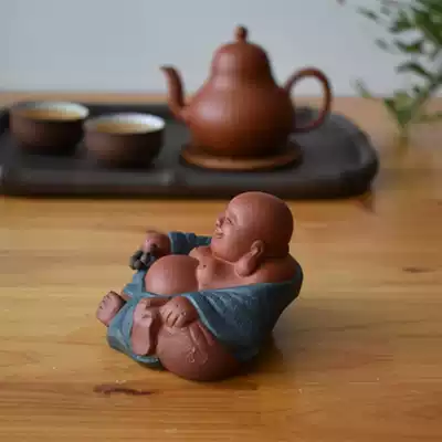 Zisha boutique color wealth Maitreya Buddha Tathagas Buddha Smiling Buddha Little Monk Tea Pet Sculpture Tea Pair Sculpture