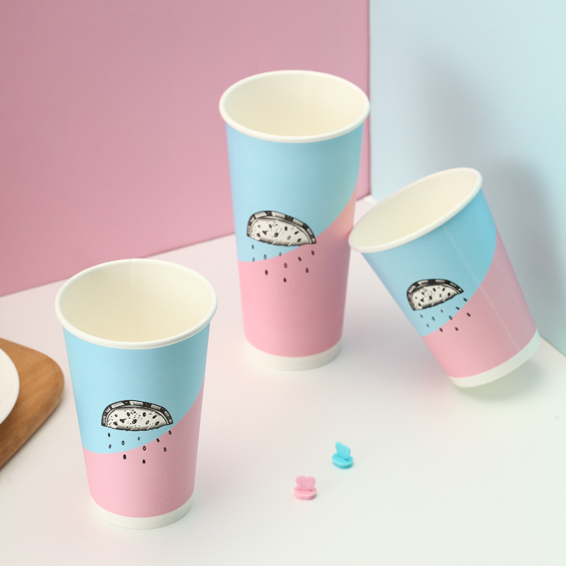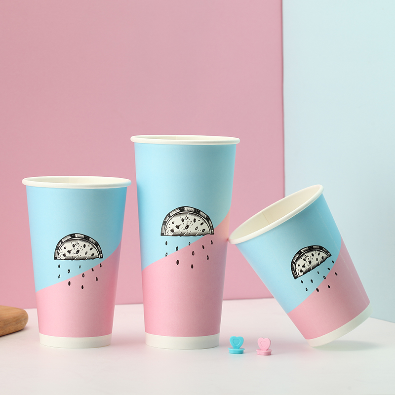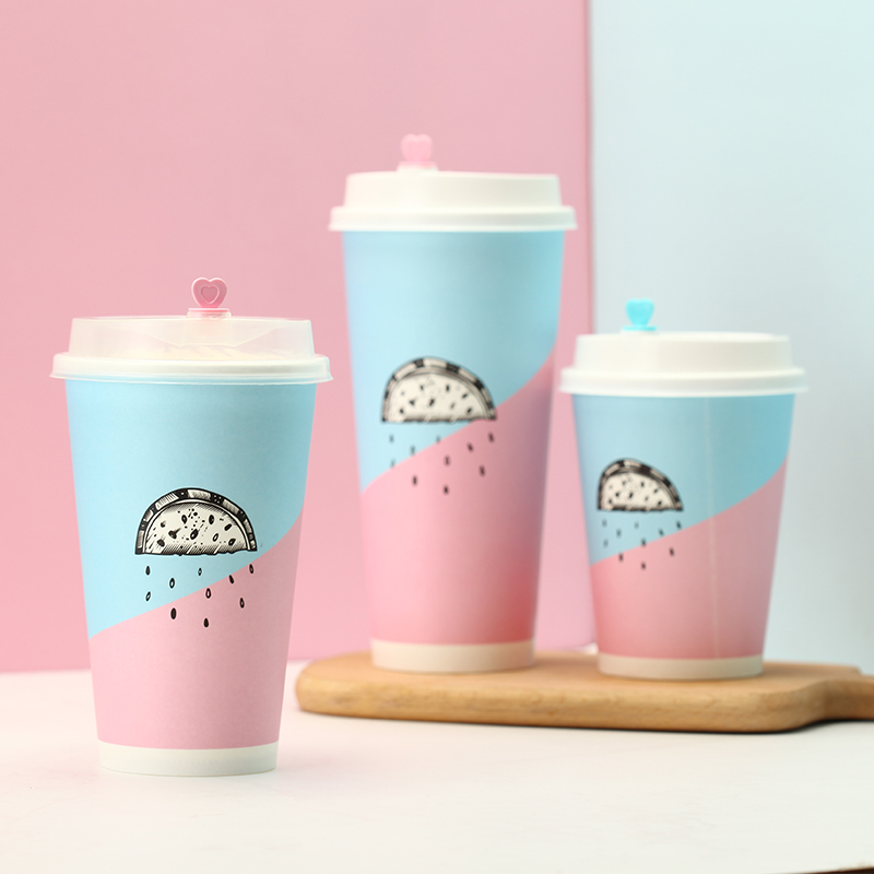 Sakura pink thickened milk tea cup disposable paper cup 700ml creative juice cup with lid commercial custom logo